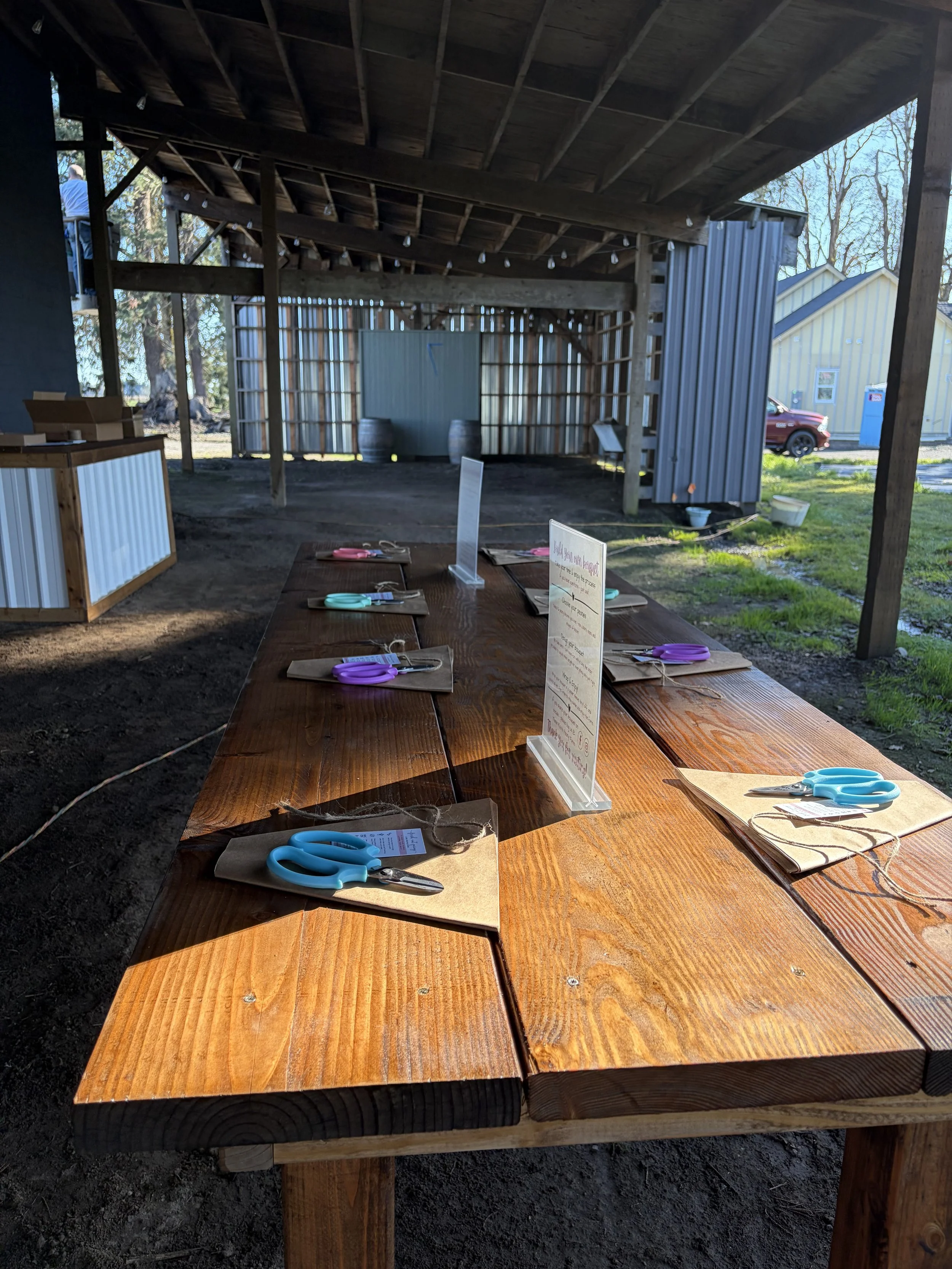 Once your bouquet is complete, stay awhile and soak in the views. Picnic tables will be available, though seating is limited. You’re welcome to bring your own chairs or blankets, and feel free to bring a picnic or snacks/drinks if you’d like to linger a bit longer among the peonies.